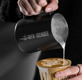 Innovative Design Concept: Our metal milk foamer cup features a revolutionary crocodile cylinder mouth design and dual-curved guide grooves, engineered to elevate your latte art technique effortlessly. Perfect for crafting flawless cappuccinos or lattes, it enhances precision and control during pouring.