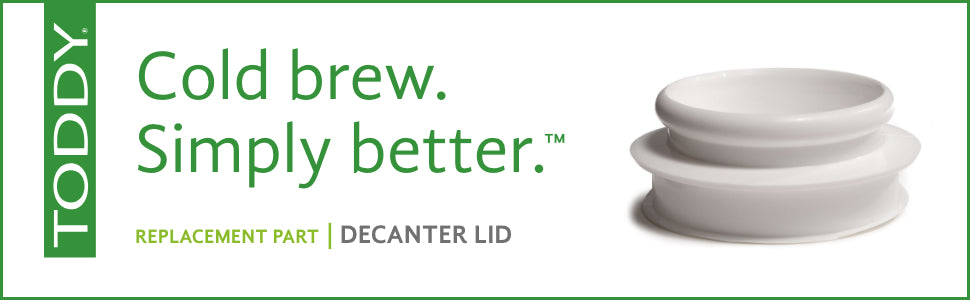 A replacement lid for the Toddy Home System glass decanter. Crafted from durable plastic, specifically low-density polyethylene, this lid securely seals the decanter's upper portion, effectively preventing any spills and preserving the delightful flavours of your coffee concentrates secure in the fridge.